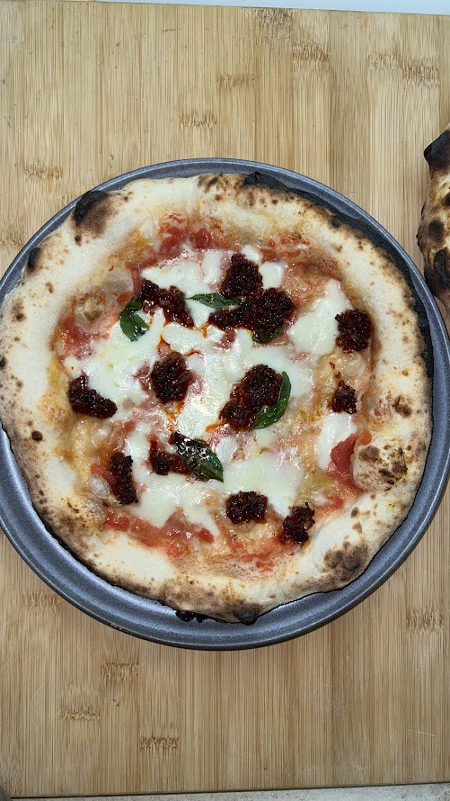 San Marzano, Fior di latte, parmesan, pecorino, basilika och Nduja (en form av bredbar salami)